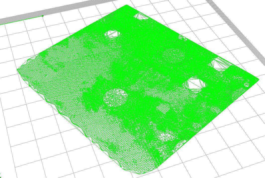 次に思いついたのは三角網というものです。地上の標高点を線で結んで三角形のポリゴンで地形を表すものです。この三角網であれば少しは詳細に地形を表すことが出来ると思われます。