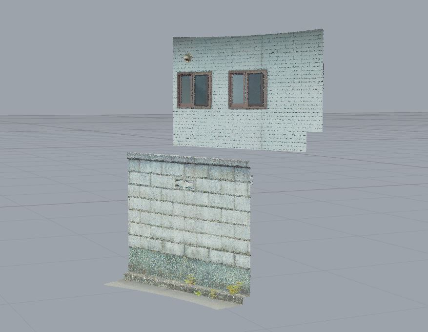 ブロック擁壁と建物の壁を処理してみました。