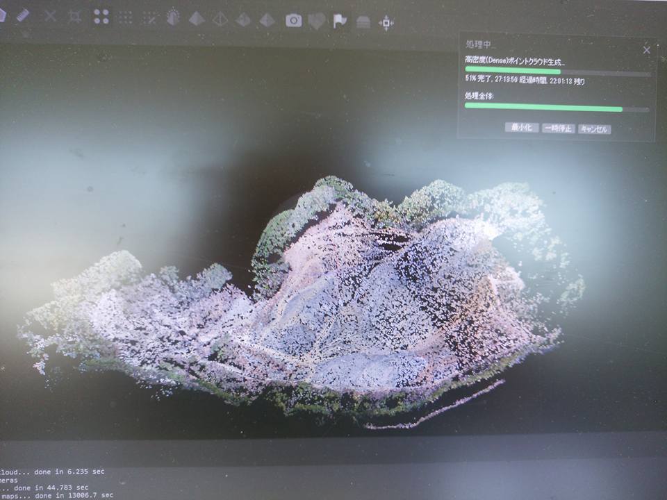採石場を撮ってきましたが・・・ 先日ドローンで撮ってきた採石場の写真300枚を解析中ですが27時間たってもまだ終わんないし、終了まで残り22時間ですと… というか時間がたつにつれ残り時間が増えているような気がするけど(2017/3/19)