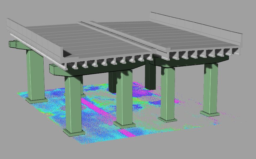 そこでとりあえずこれに点群を重ねてみます。一番上のスキャナデータから地面以外のものを