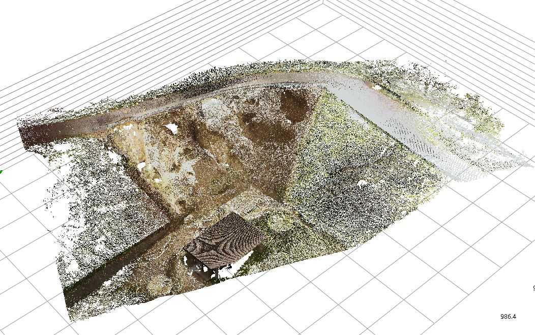 災害の現場でスキャナ点群とドローンの点群を合成してみた。