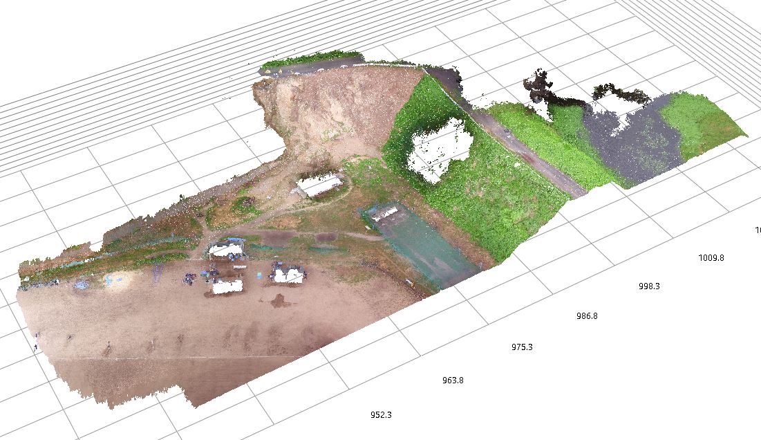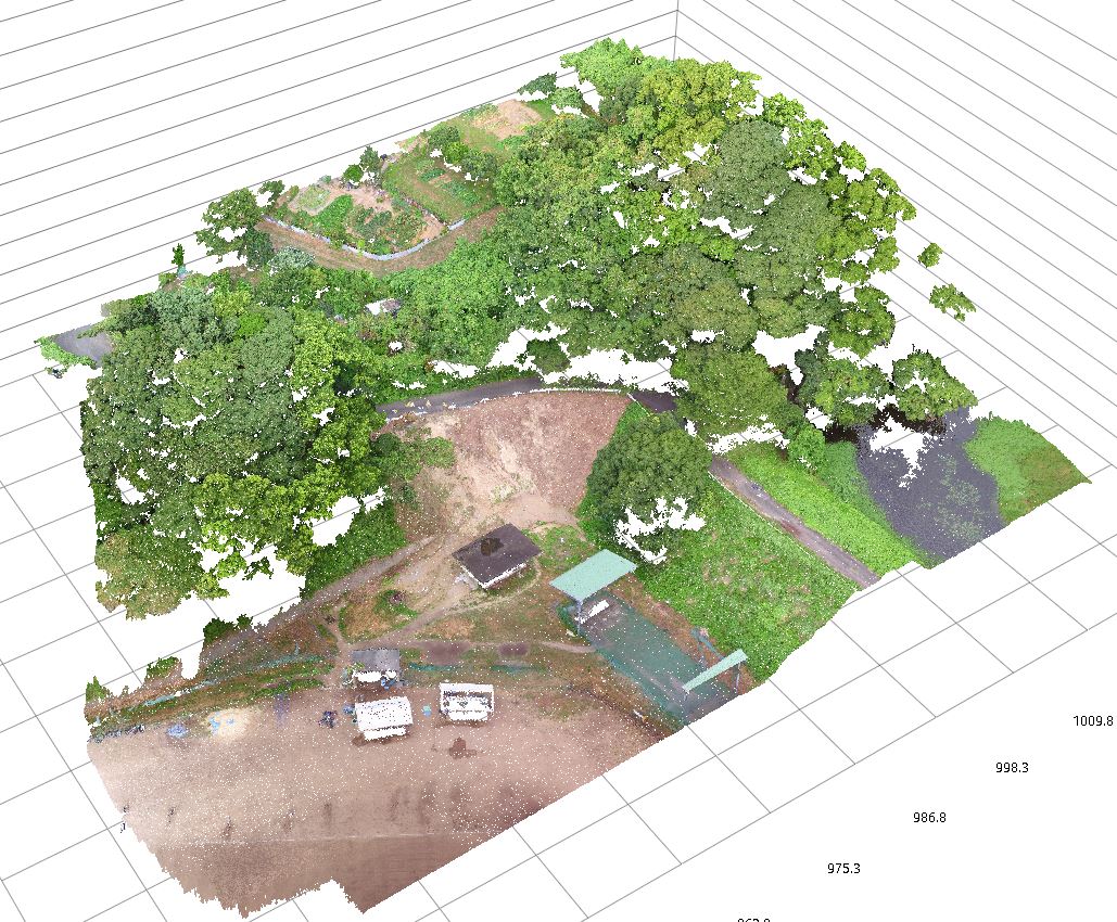 ドローンから空中撮影して点群を生成したものが上の画像です。