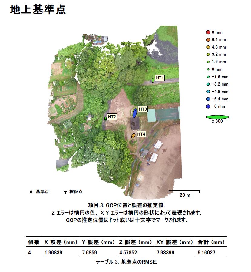 検証点まで起きませんでしたが、検証点4点での評定誤差は以下の通りです。