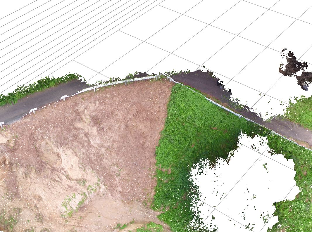 スキャナでは影になり綺麗に取れない崩壊法面の穴の部分とかは綺麗に写ります。