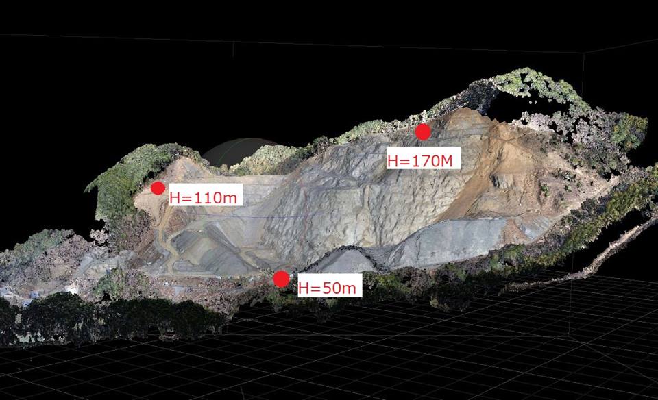 この採石場ではdjiのGS proを使いましたが、ものすごく大変でした。正直今の仕様では写真測量には向きません。(それに気づいたのが収穫ですが・・・)