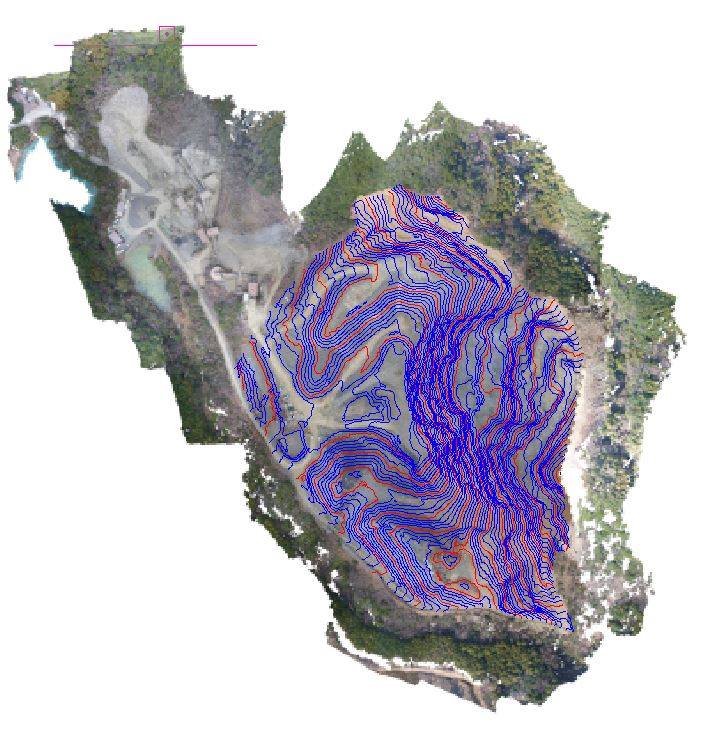 で!、3次元で見れたからどうなんだ!ということなのですが別のソフトウェアにかけてあげれば、等高線の図面になったり、断面図になったりします。